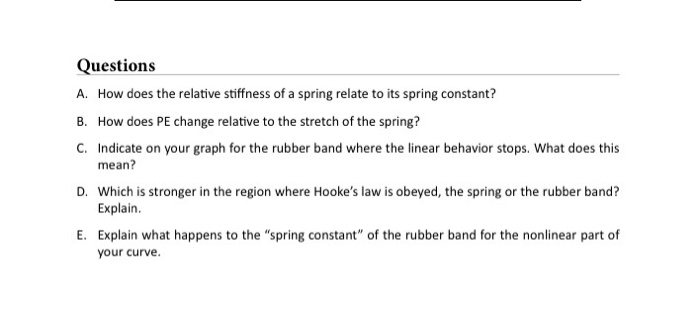 Then using the scatter plot and a line of best fit students will determine the spring constant of the rubber band.